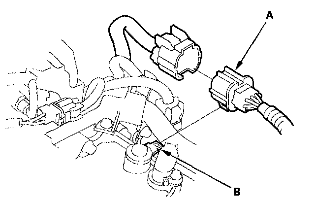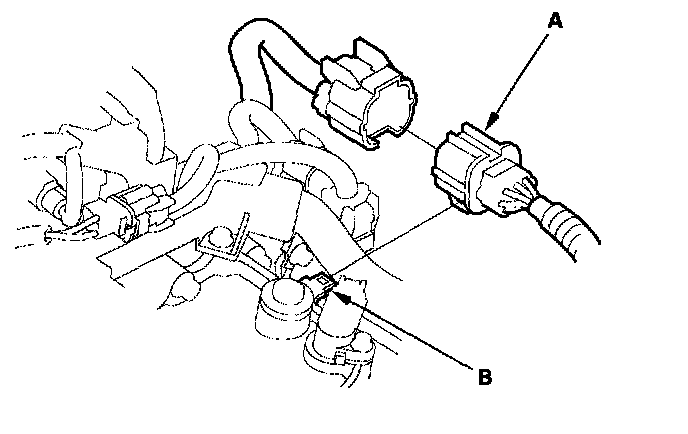 4. Remove the A/T gear position switch connector (A) from the connector bracket (B), then disconnect the connector.