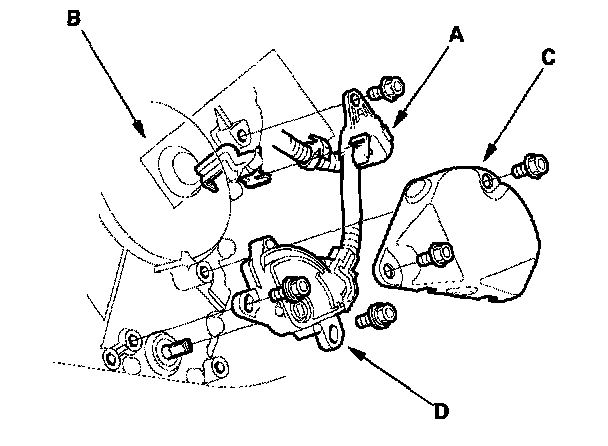6. Remove the A/T gear position switch cover (C), then remove the A/T gear position switch (D) from the end cover.