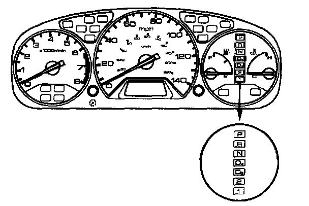 12. Turn the ignition switch ON (II). Move the shift lever through all gears, and check the A/T gear position switch synchronization with the A/T gear position indicator.