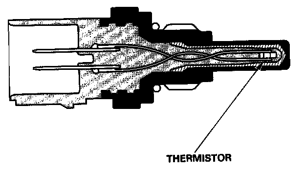 The ECT sensor is a temperature dependent resistor (thermistor). The resistor of the thermistor decreases as the Engine Coolant temperature increases.