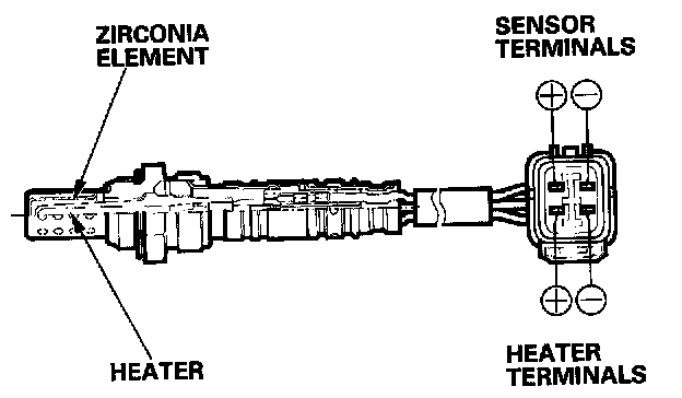 The heated oxygen sensors detect the oxygen content in the exhaust gas, then sends signals to the PCM which varies the duration of fuel injection accordingly. To stabilize its output, the sensors have an internal heater. The primary sensor is installed in the exhaust pipe. The secondary sensor is installed in the TWC.