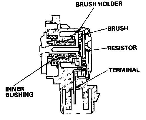 The TP sensor is a potentiometer connected to the throttle valve shaft. As the throttle position changes, the sensor varies the signal voltage to the PCM. The TP sensor is not replaceable apart from the throttle body.