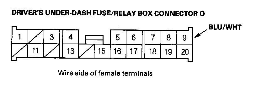 Driver's Under-Dash Fuse/Relay Box Connector O: