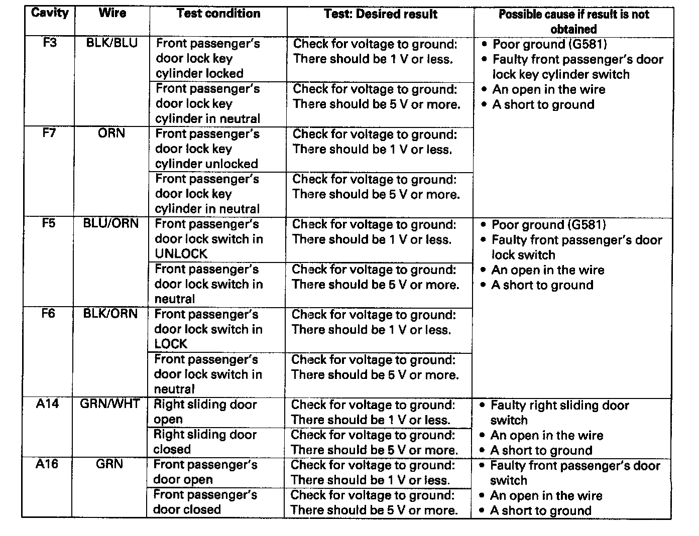 12. With the door unit still disconnected, make these input tests at the connector.