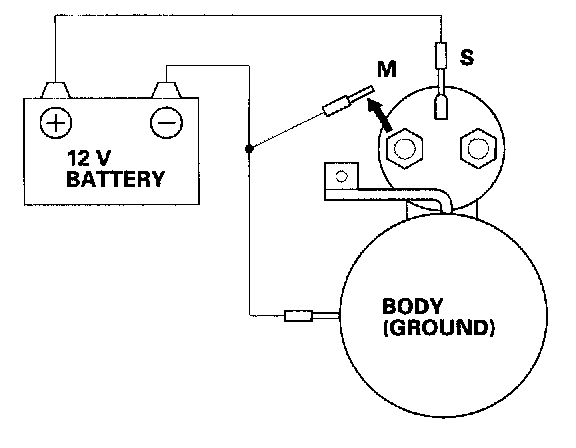 4. Disconnect the battery from the M terminal. If the pinion does not retract, the hold-in coil of the solenoid is working properly.