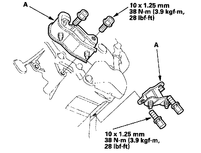 27. Install the exhaust pipe A (A) and the three way catalytic converter (B) assembly.