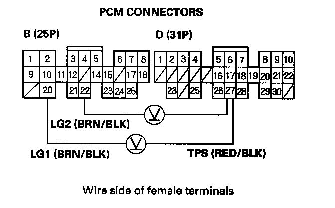 8. Reconnect the A (32P) and B (25P) connectors to the PCM.