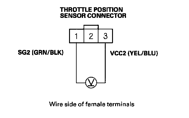 14. Measure the voltage between the No. 1 and No. 3 terminals of the TPS connector.