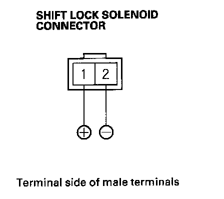 NOTE: Do not connect the No. 2 terminal to the battery positive terminal or you will damage the diode inside the shift lock solenoid.