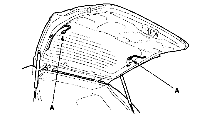2. Disconnect the rear window defogger connectors (A).