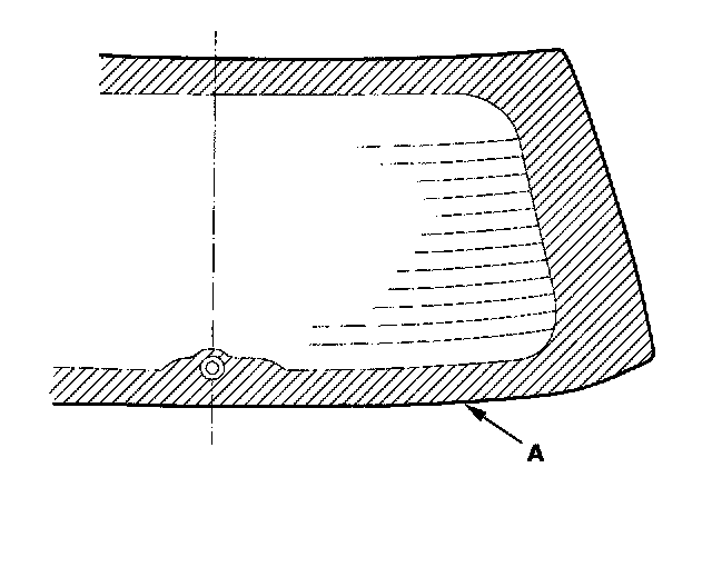 8. If the old rear window is to be reinstalled, use a putty knife to scrape off all of the old adhesive and rubber dam from the rear window. Clean the shaded portion of the rear window (A) with alcohol where new adhesive is to be applied. Make sure the bonding surface is kept free of water, oil and grease.
