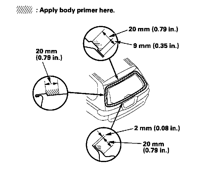 - Never touch the primed surfaces with your hands. If you do, the adhesive may not bond to the rear window properly, causing a leak after the rear window is installed.