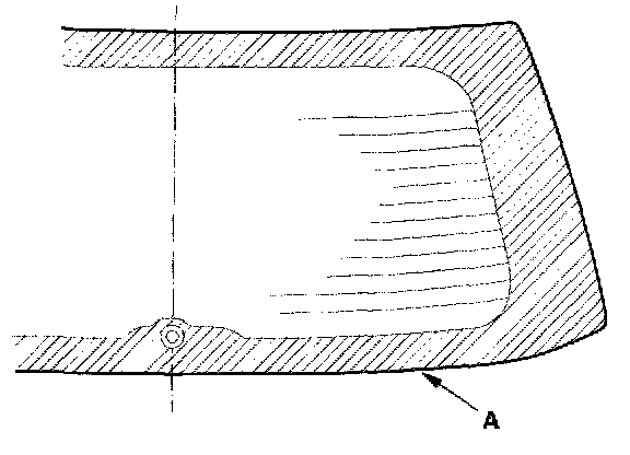 9. If the old rear window is to be reinstalled, use a putty knife to scrape off all of the old adhesive and rubber dam from the rear window. Clean the shaded portion of the rear window (A) with alcohol where new adhesive is to be applied. Make sure the bonding surface is kept free of water, oil and grease.