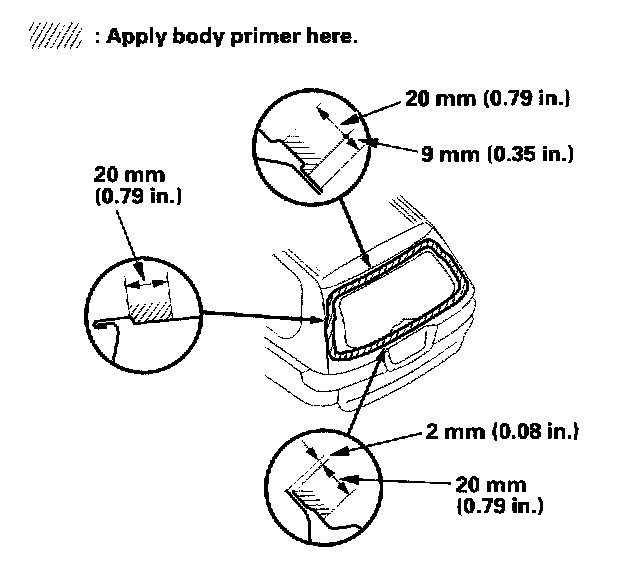 - Never touch the primed surfaces with your hands. If you do, the adhesive may not bond to the rear window properly, causing a leak after the rear window is installed.