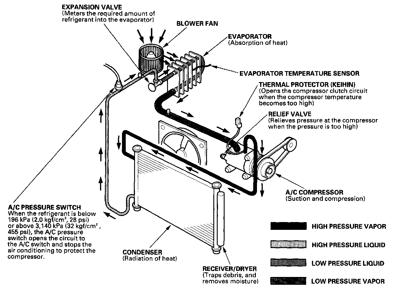 - All A/C system parts (compressor, discharge line, suction line, evaporator, condenser, receiver/dryer, expansion valve, O-ring for joints) have to be proper for refrigerant R-134a. Do not confuse with R-12 parts.