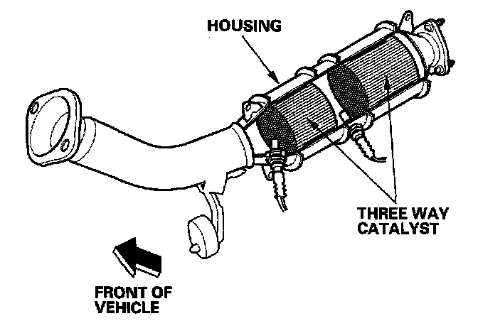 The TWC converts hydrocarbons (HC), carbon monoxide (CO), and oxides of nitrogen (NOx) in the exhaust gas to carbon dioxide (CO2), nitrogen (N2), and water vapor.