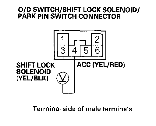 NO - Repair open or short in the wire between the O/D switch/shift lock solenoid/park pin switch connector and under-dash fuse/relay box.