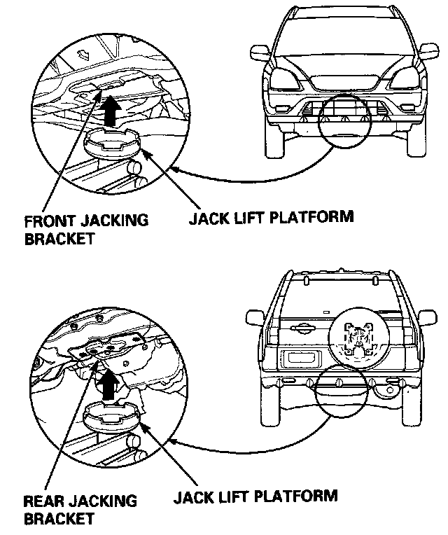 3. When lifting the rear of the vehicle, put the gearshift lever in reverse, or the automatic transmission in position.