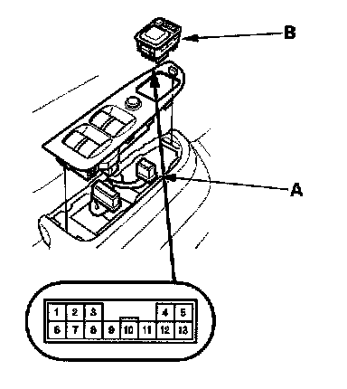 2. Disconnect the 13P connector (A) from the power mirror switch (B).