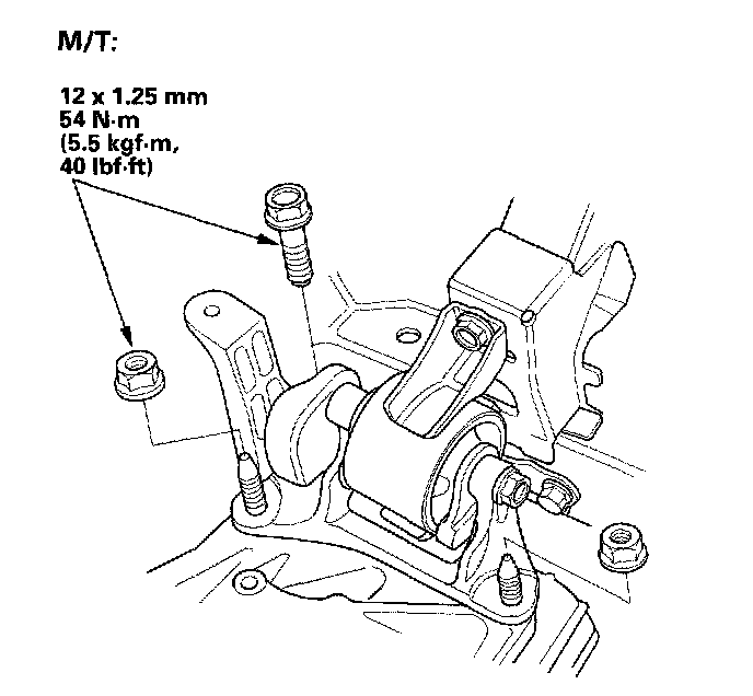 11. Tighten the transmission mount bracket support bolt/nuts.