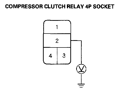 4. Measure the voltage between the No.2 terminal of the compressor clutch relay 4P socket and body ground.