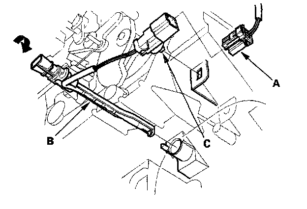 Evaporator Temperature Sensor Replacement1. Disconnect the 2P connector (A) from the evaporator temperature sensor (B), then remove the connector clip (C). Turn the evaporator temperature sensor clockwise to the stop, and carefully pull out it.