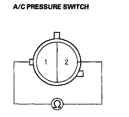 7. Check for continuity between the No.1 and No.2 terminals of the A/C pressure switch.