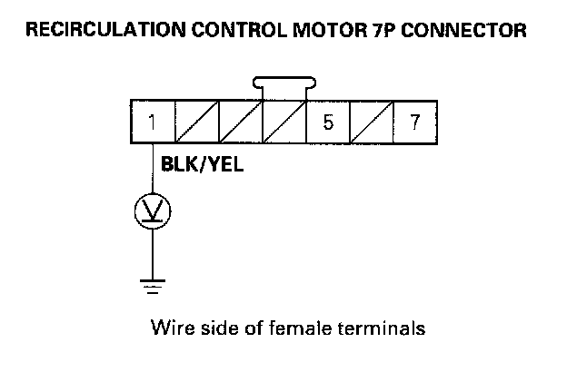 4. Measure the voltage between the No.1 terminal of the recirculation control motor 7P connector and body ground.