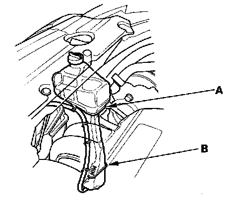 Coolant Check1. Look at the coolant level in the reserve tank. Make sure it is between the MAX mark (A) and MIN mark (B)