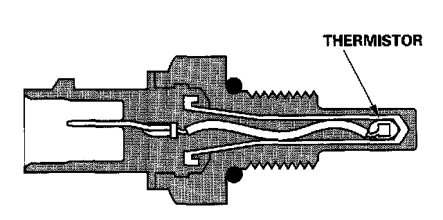 The ECT sensor is a temperature dependent resistor (thermistor). The resistance of the thermistor decreases as the engine coolant temperature increases.