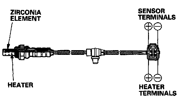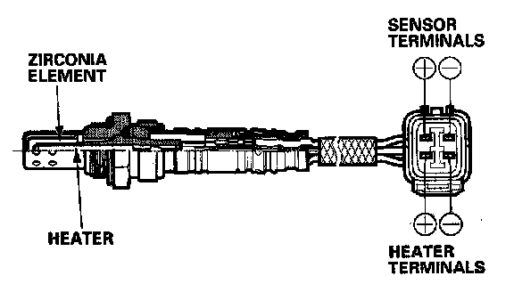 The secondary HO2S detects the oxygen content in the exhaust gas downstream of the three way catalytic converter (TWC) and sends signals to the ECM/PCM which checks the efficiency of the TWC. To stabilize its output, the sensor has an internal heater. The ECM/PCM compares the HO2S output with the A/F sensor output to determine catalyst efficiency. The secondary HO2S is installed in the TWC.