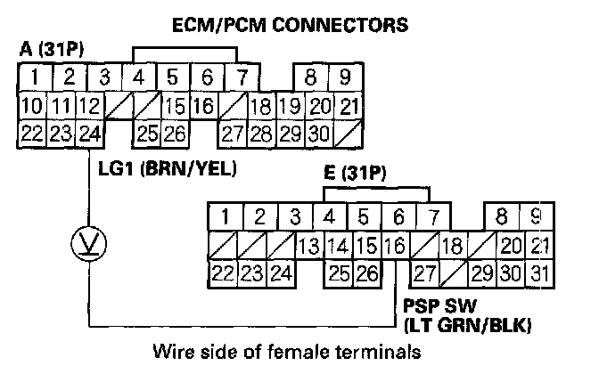 PSP Switch Signal Circuit Troubleshooting1. Turn the ignition switch ON (II).