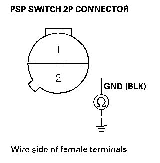 12. Check for continuity between PSP switch 2P connector terminal No. 2 and body ground.