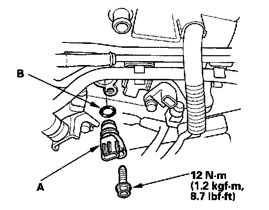 Install the sensor in the reverse order of removal with a new O-ring (B).