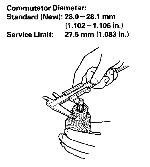 5. Check the commutator diameter. If the diameter is below the service limit, replace the armature.