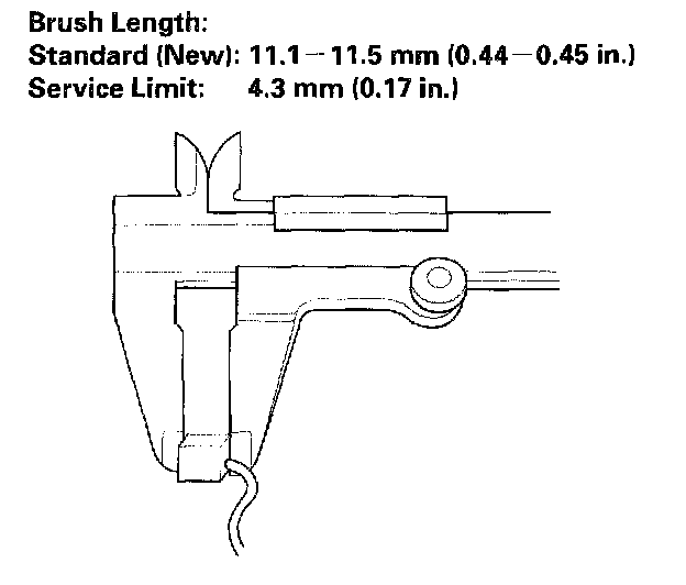 11. Measure the brush length. If it is not within the service limit, replace the brush holder assembly.