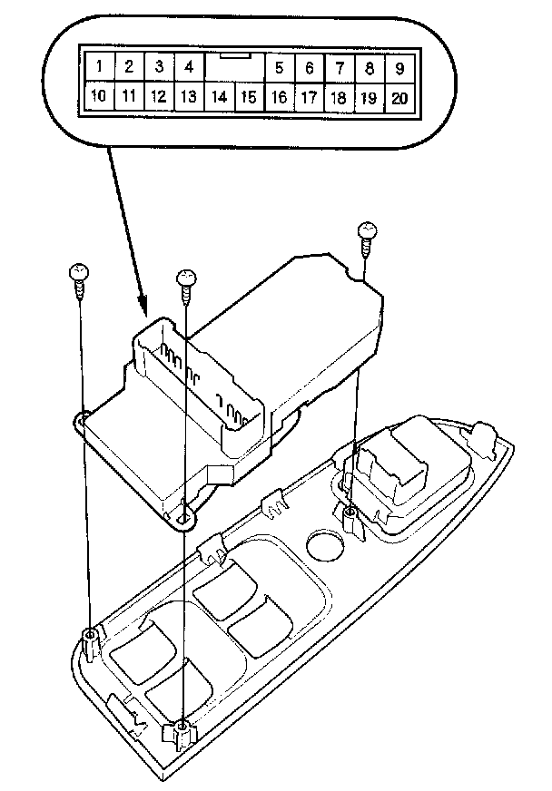 2. Disconnect the 20P connector from the power window master switch.