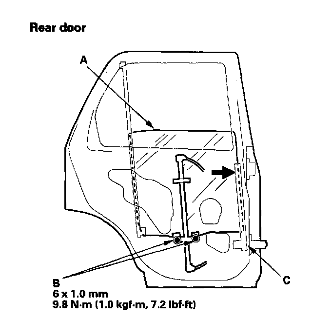 4. Push the glass against the channel (C), then tighten the glass mounting bolts.