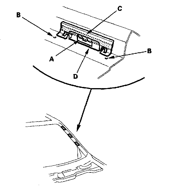6. Apply two-part epoxy adhesive (D) around the edge of the retainers as shown.