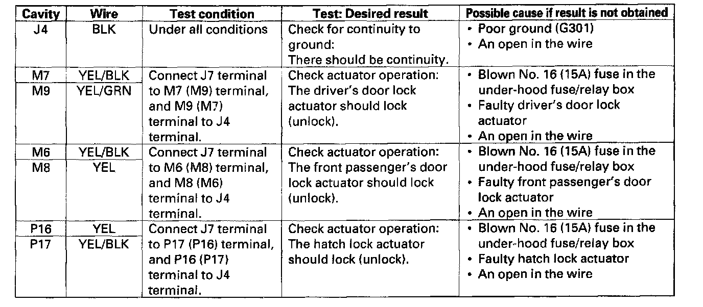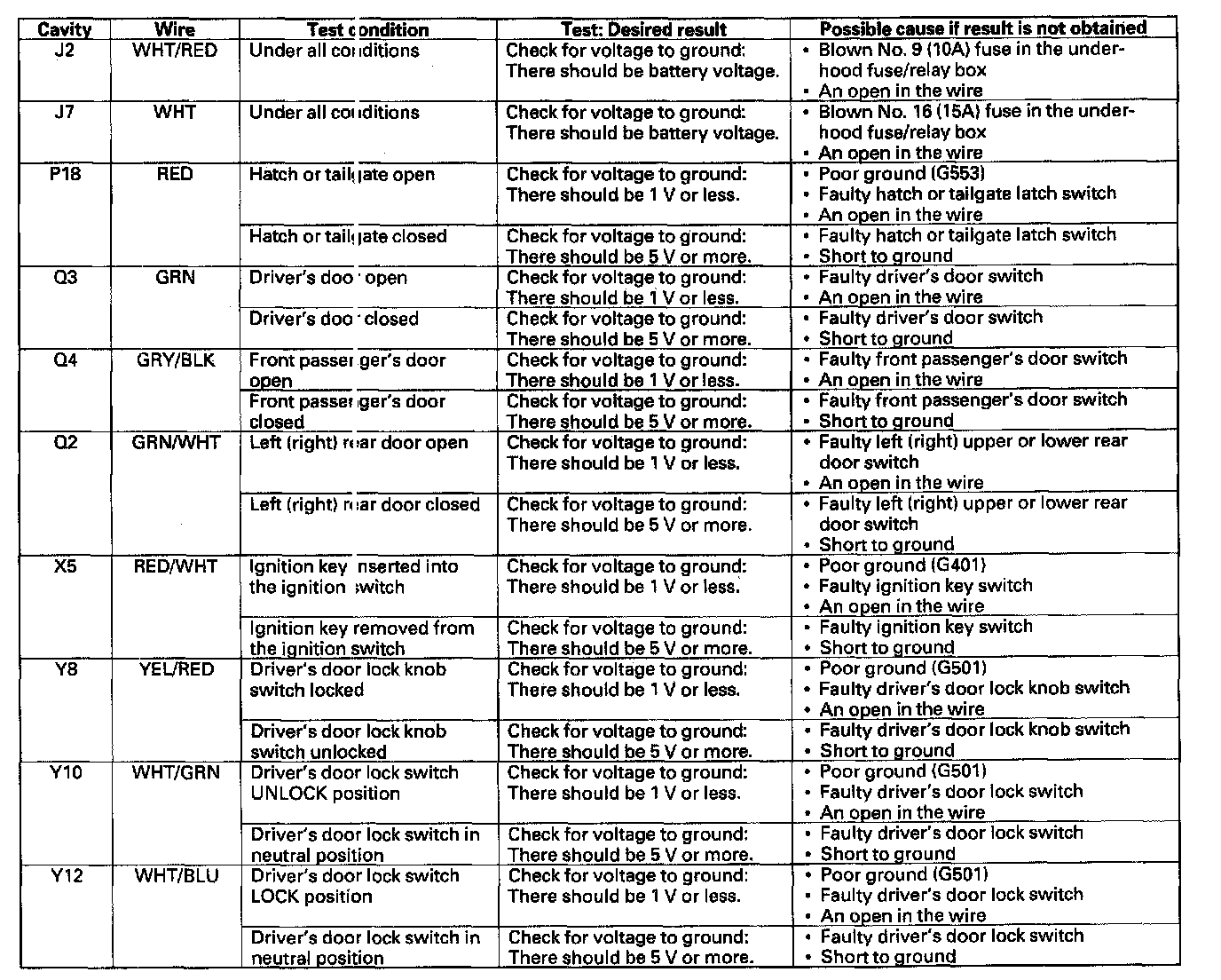 4. Reconnect all connections to the under-dash fuse/relay box, and make these input tests at the appropriate connectors on the under-dash fuse/relay box