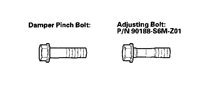 NOTE: The camber angle can be adjusted up to ±15' (center of tolerance) by replacing one damper pinch bolt with the adjusting bolt. The camber angle can be adjusted up to ±30' by replacing both damper pinch bolts with the adjusting bolts.