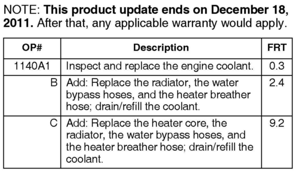 Not all vehicles within the affected VIN ranges have contaminated coolant.