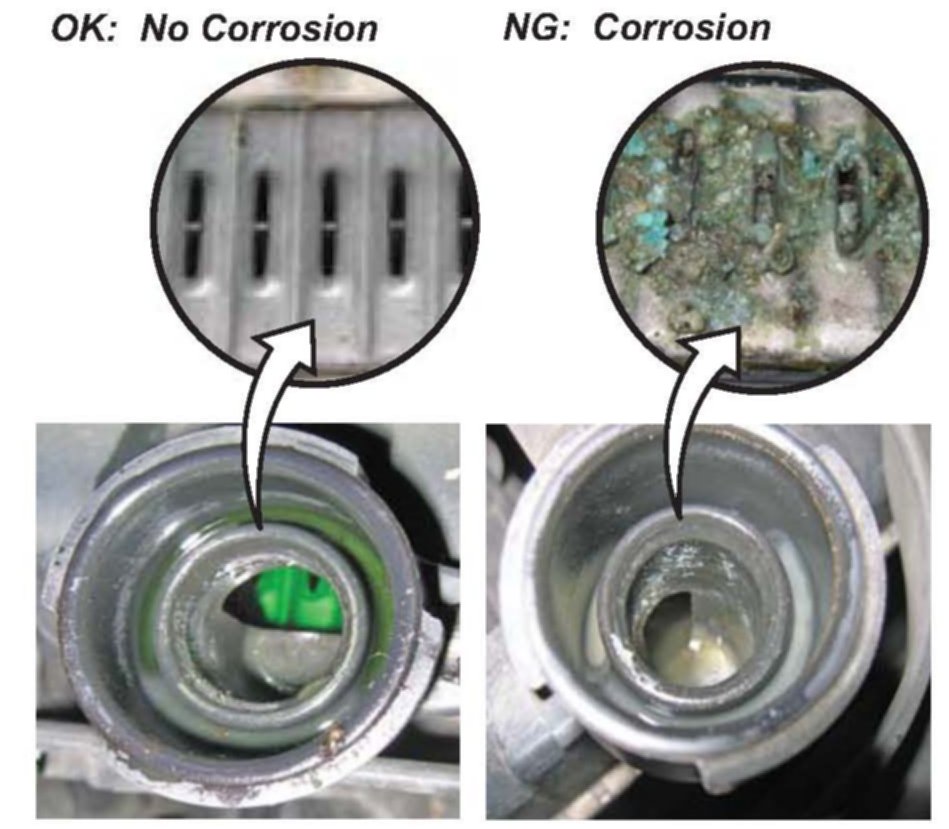 3. Remove the radiator cap, and check for corrosion at the cap opening: