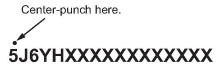 14. Center-punch a completion mark above the first character of the engine compartment VIN.