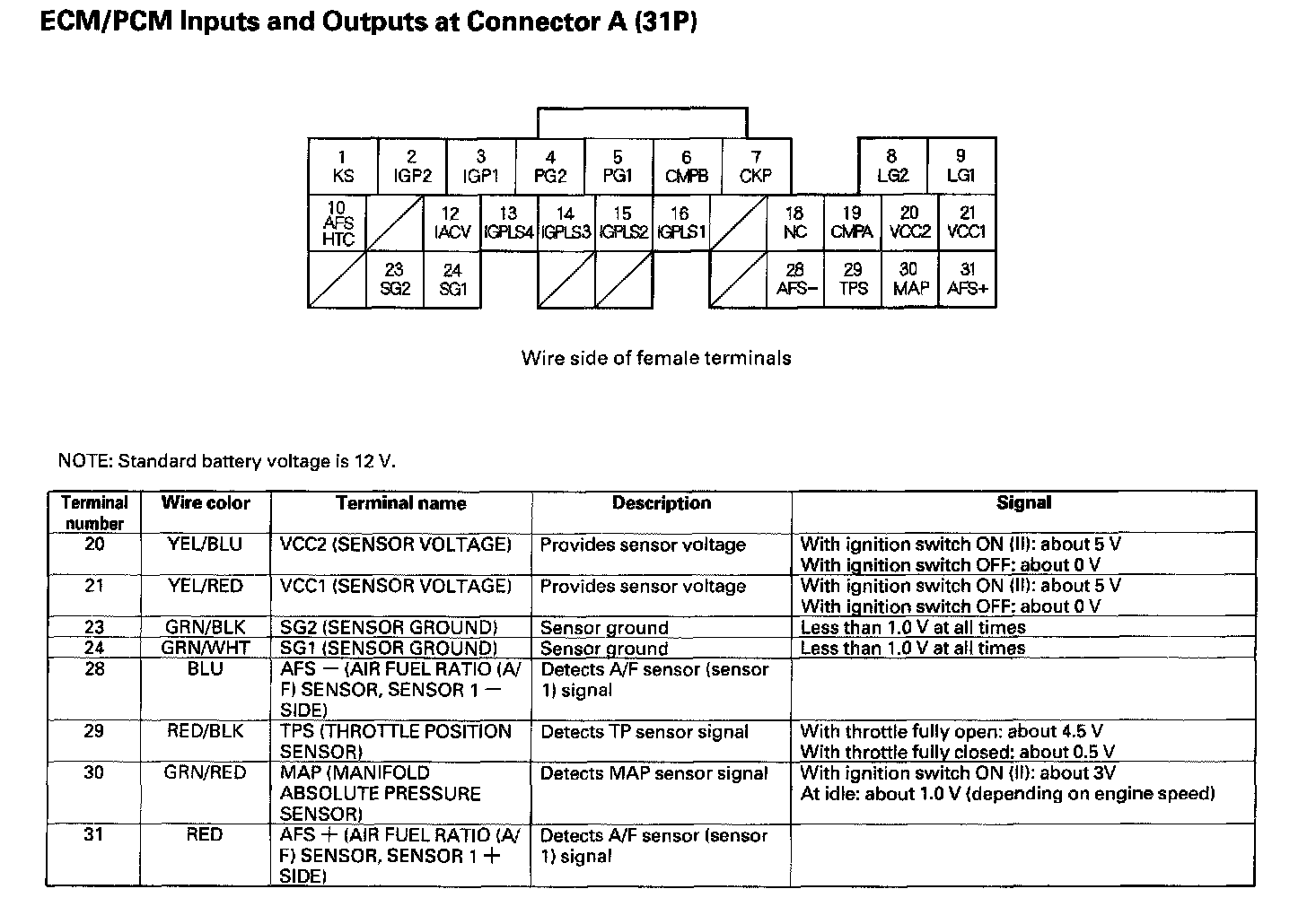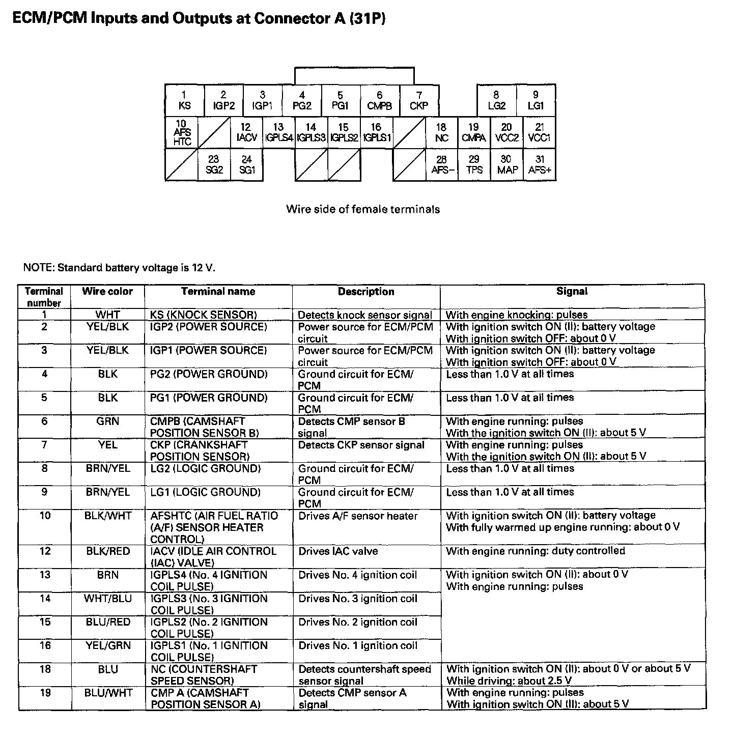 ECM/PCM Inputs And Outputs At Connector A (31P) Part 1: