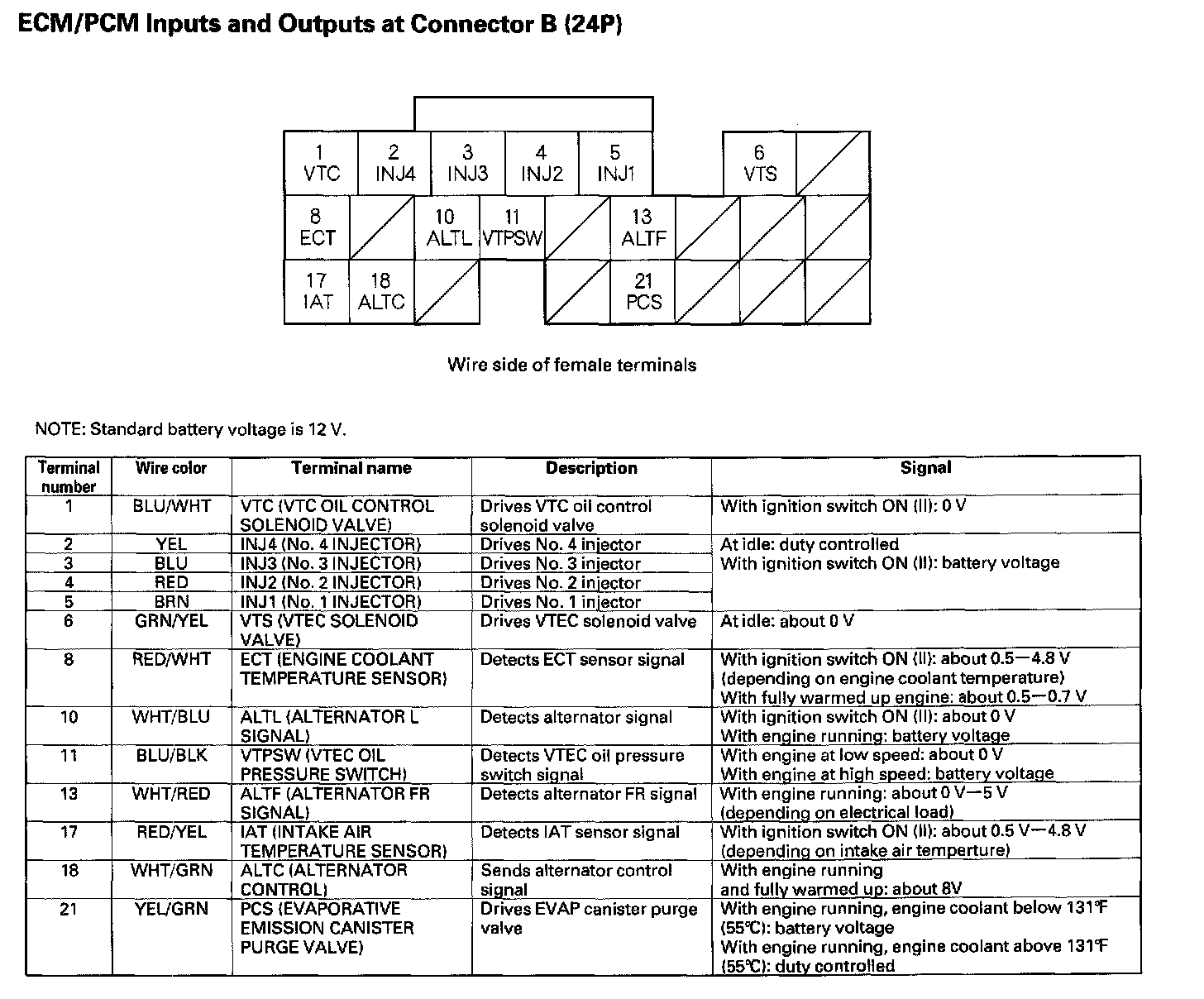 ECM/PCM Inputs And Outputs At Connector B (24P):