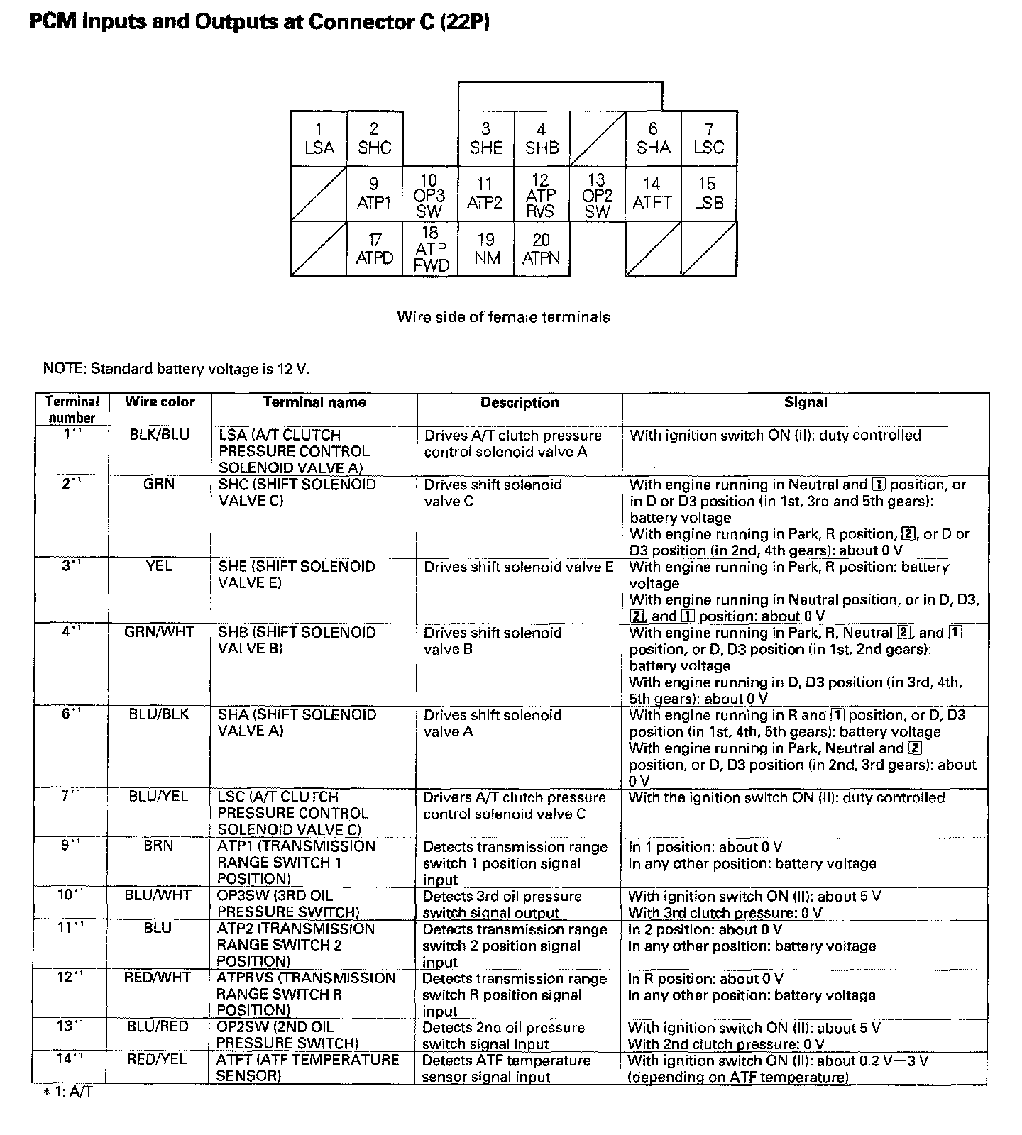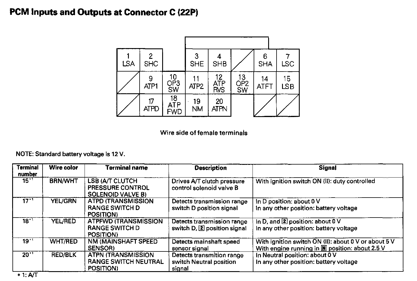 PCM Inputs And Outputs At Connector C (22P) Part 1: