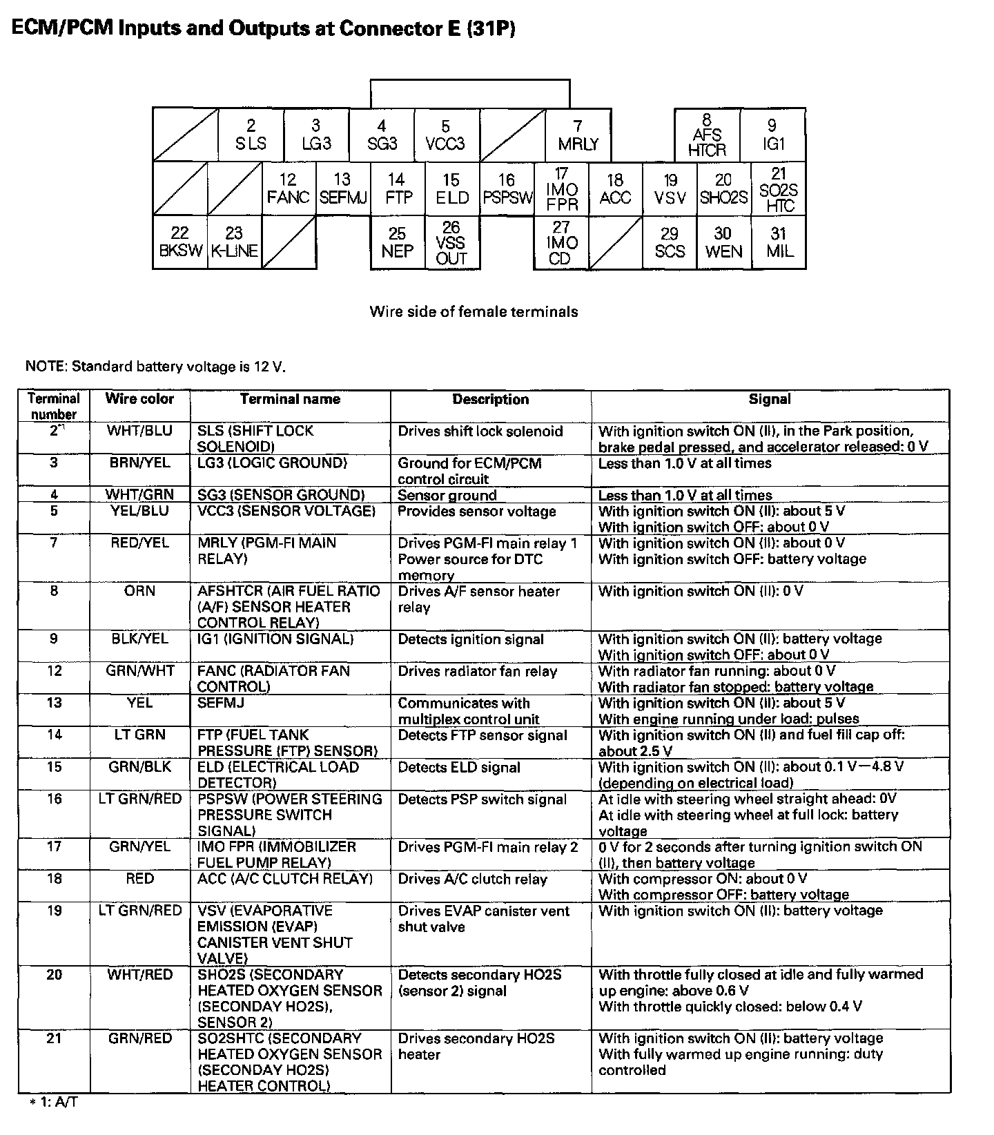 ECM/PCM Inputs And Outputs At Connector E (31P) Part 1: