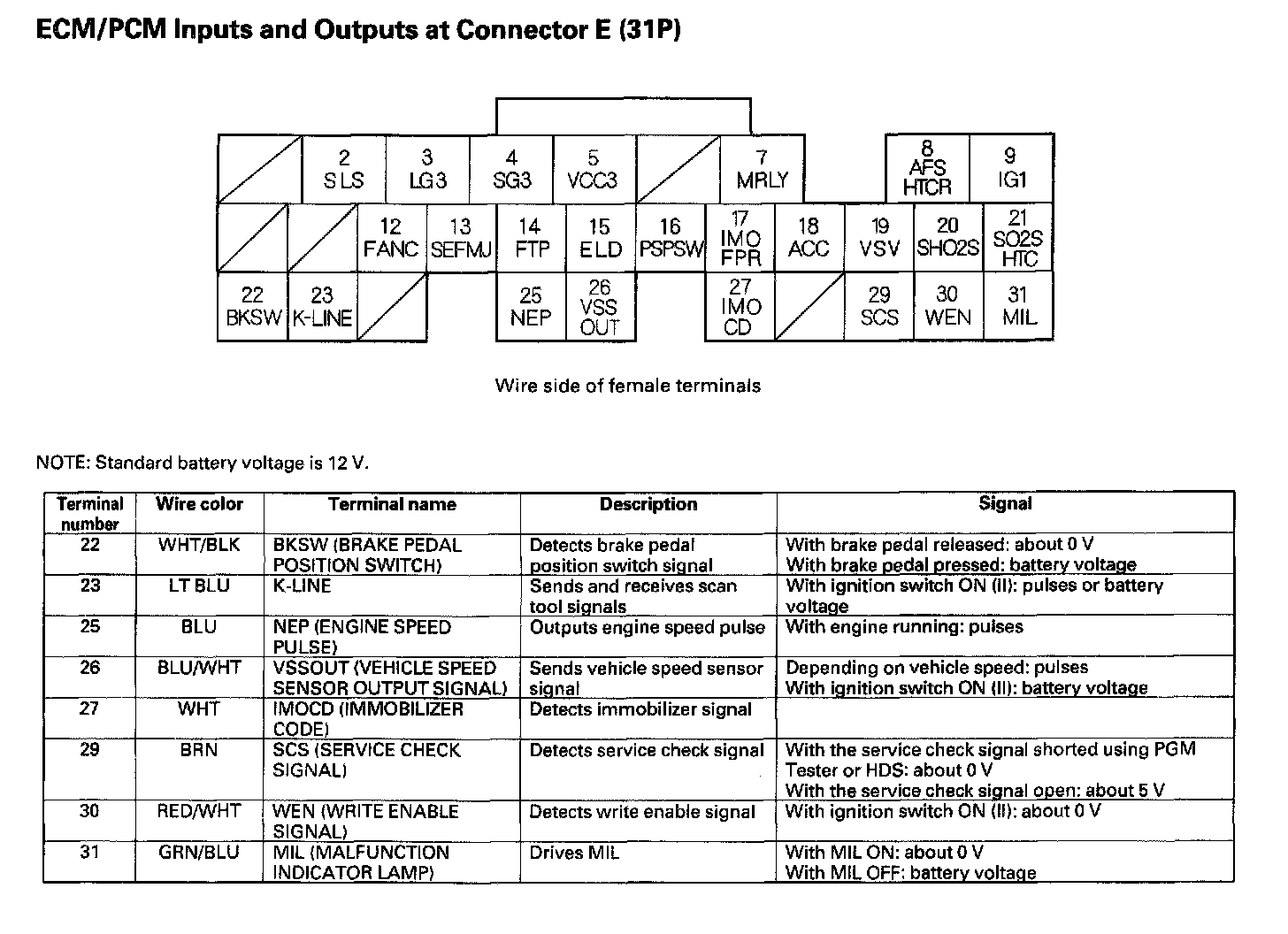 ECM/PCM Inputs And Outputs At Connector E (31P) Part 2: