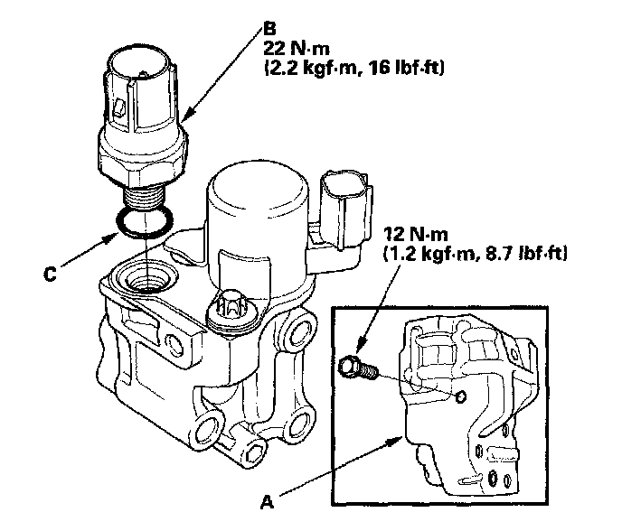 4. Install the switch in the reverse order of removal with a new O-ring (C).